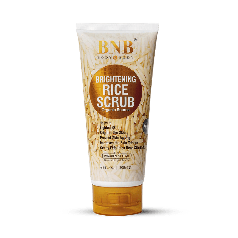 BNB Rice Brightening Scrub 200ML unveils smoother, brighter, and healthier skin. Infused with natural rice extract, this gentle exfoliating scrub removes impurities, dead skin cells, and excess oil while enhancing your skin’s natural glow. Perfect for everyday use, it rejuvenates your skin and keeps it soft, clean, and radiant.